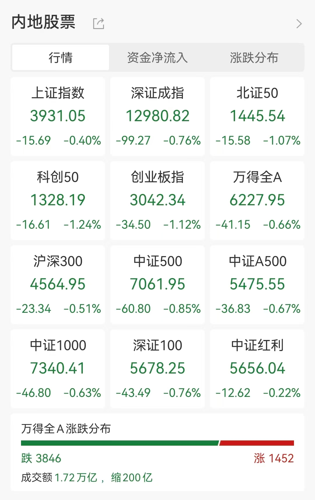 A股板块方面,锂电电解液、光伏、水产、电商、首发经济、英伟达题材纷纷回调,煤炭、石油、零售、军工跌幅靠前。锂矿、银行、地产逆势走强。