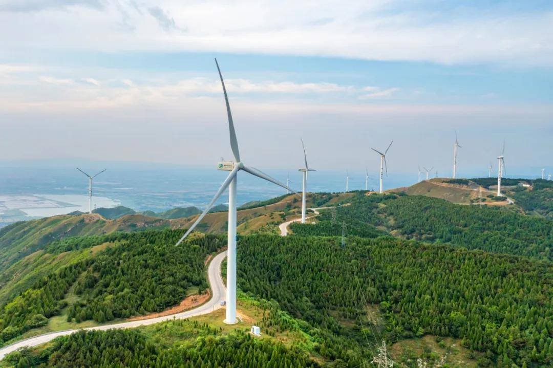 山西省运城市平陆县张店镇境内中条山上风力发电场,发电机风轮迎风转动输送绿色电能。(图源:视觉中国)